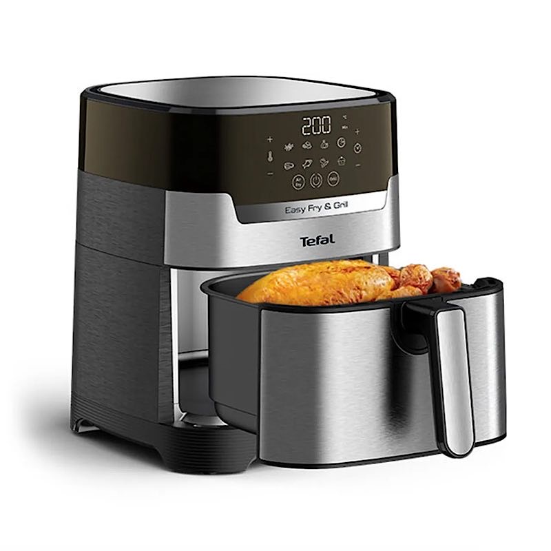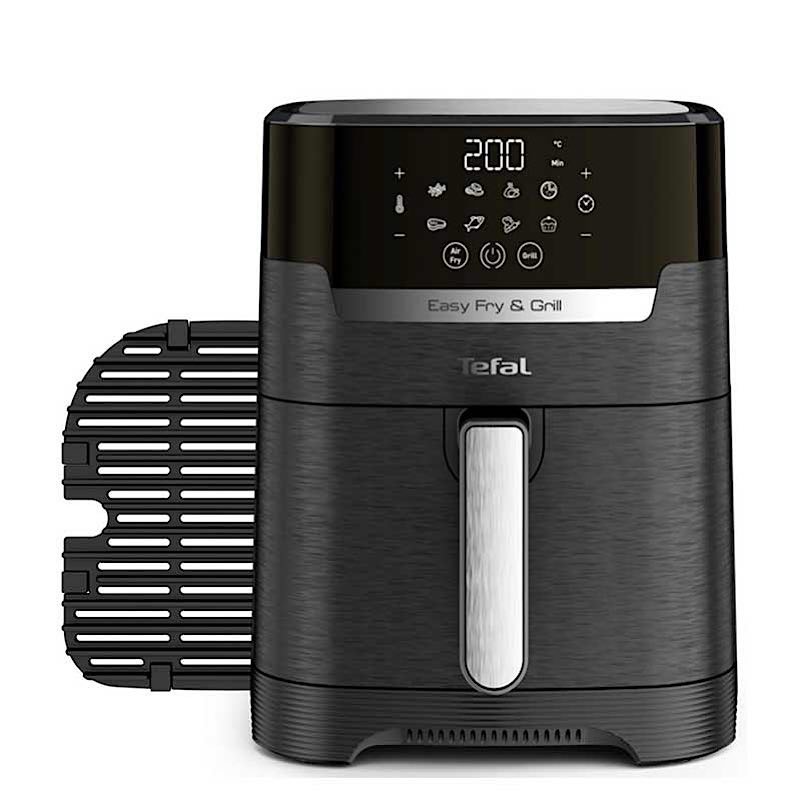 سرخکن تفال EY505D یک دستگاه دوکاره (ایرفرایر + گریل) با ظرفیت XL است که امکان تهیه غذای سالم با کمترین روغن را فراهم میکند. این دستگاه دارای فناوری Extra Crisp برای تردی طلایی، سینی گریل آلومینیوم ریختهگری برای تفت دادن و ۸ برنامه خودکار برای راحتی بیشتر است. دما از ۸۰ تا ۲۰۰ درجه سانتیگراد قابل تنظیم بوده و با تایمر ۶۰ دقیقهای و اعلان صوتی پایان پخت مجهز است. همچنین امکان خشککردن میوه و سبزیجات نیز دارد.