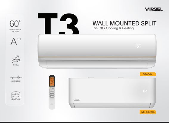 کولر گازی دیواری 24000 ویربل تروپیکال دور ثابت (T3) مدل WTSE-24HO3RAPA