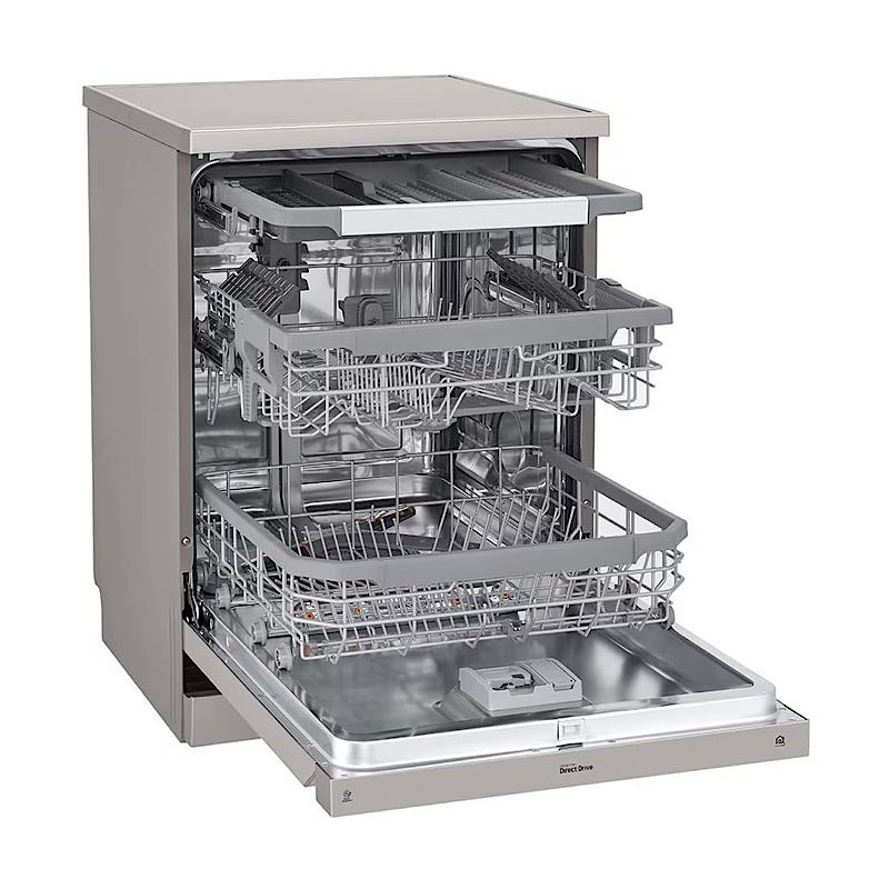 ماشین ظرفشویی الجی DFB425FP با ظرفیت 14 نفره، قادر به شستشوی بیش از 150 تکه ظرف در هر چرخه است. این دستگاه با موتور اینورتر دایرکت درایو (Inverter Direct Drive) کار میکند که علاوه بر کاهش مصرف انرژی، لرزش و صدای کمتری نیز تولید میکند. همچنین، با فناوری TrueSteam و سیستم QuadWash، شستشویی بهینه و بدون لکه را تضمین میکند.