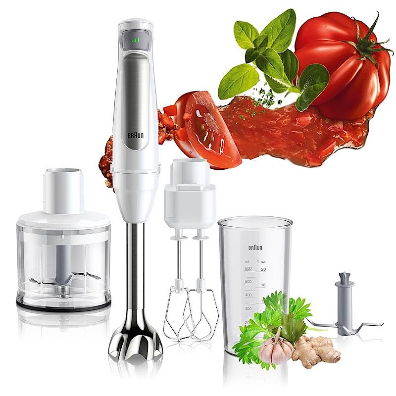 گوشتکوب برقی براون مدل MQ7035 از سری MultiQuick 7، با موتور ۵۰۰ واتی و طراحی ارگونومیک، برای تهیه انواع پوره، سوپ، سس، اسموتی و همزدن تخممرغ یا خامه مناسب است. این دستگاه با تیغههای استیل ضدزنگ و فناوریهای ActiveBlade و PowerBell Plus، عملکردی سریع و بدون پاشش ارائه میدهد. سیستم EasyClick امکان تعویض سریع لوازم جانبی را فراهم میکند. این مدل در مقایسه با مدلهای MQ500 و MQ300، با توان بالاتر و فناوریهای پیشرفتهتر، عملکرد بهتری دارد.