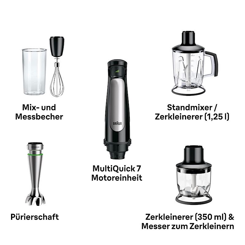 گوشتکوب برقی براون مدل MQ7045X از سری MultiQuick 7، با موتور ۱۰۰۰ واتی، طراحی ارگونومیک و فناوریهای پیشرفتهای مانند ActiveBlade و SplashControl، برای تهیه انواع پوره، سوپ، سس، اسموتی و همزدن تخممرغ یا خامه مناسب است. این دستگاه با تیغههای استیل ضدزنگ و سیستم EasyClick Plus، عملکردی سریع و بدون پاشش ارائه میدهد. همچنین، لوازم جانبی آن شامل خردکن ۳۵۰ میلیلیتری، مخلوطکن ۱.۲۵ لیتری با تیغه یخشکن، همزن استیل و لیوان مدرج ۶۰۰ میلیلیتری است. تمامی قطعات قابل شستشو در ماشین ظرفشویی میباشند.